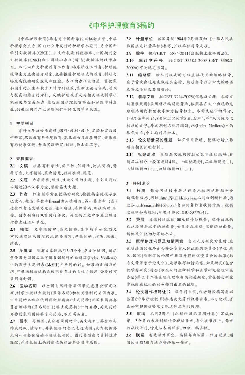 《中华护理教育》稿约