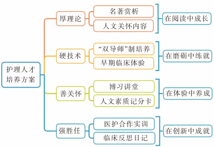 In the context of developing New Liberal Arts,the School of Nursing at Soochow University Medical College leverages the rich cultural heritage of a comprehensive university nurtured by Wu Culture and its strengths in humanities and social sciences to develop and implement an innovative nursing talent cultivation program that integrates professional expertise with humanistic values. Under the Western Region Talent Development Special Program,the college has designed an outstanding nursing education program,designing a comprehensive nursing talent cultivation program that emphasizes the educational philosophy of “solid theory,strong skills,compassionate care,and high competence”. It continuously refines training strategies,establishing a new talent cultivation model characterized by “one core with two wings”(professional depth with human warmth). A humanistic education curriculum system has been developed,featuring “general education as the foundation,professional integration,and practical expansion”. Up to date,nearly a thousand exceptional nursing professionals who embody both professional expertise and humanistic literacy have been trained,earning high praise from employers. This research offers valuable insights for the cultivation of outstanding nursing talent in higher education institutions.