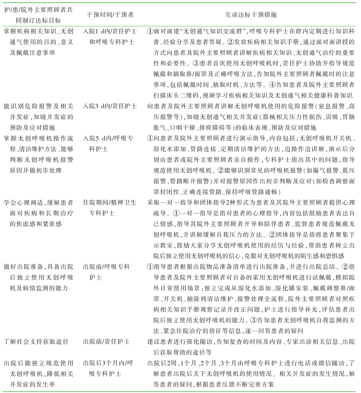Objective To explore the application effectiveness of health education based on King’s theory of goal attainment in patients receiving noninvasive ventilation. Methods By convenience sampling method,98 inpatients who underwent noninvasive ventilation in the Department of Respiratory and Critical Care Medicine of a tertiary hospital in Shanxi Province from March to October 2024 were selected as the research objects. Among them,50 patients who were treated from March to June 2024 were assigned to the control group,and 48 patients who were treated from July to October 2024 to the experimental group. The control group received routine health education,and the experimental group received a collaborative health education model based on King’s Theory of Goal Attainment,involving nurses,patients,and their primary family caregivers in a goal-setting and attainment process. The differences in treatment compliance,lung function results,PaO2,PaCO2 results and the incidence of non-invasive ventilation-related complications were compared between the two groups. Results Compared with the control group,the experimental group showed significantly better treatment compliance and PaO2/PaCO2 levels(all P<0.05),and a significantly lower incidence of complications(P<0.001). No significant between-group difference was found in other lung function parameters(P>0.05). Conclusion Health education based on the King’s theory of goal attainment is helpful to improve the treatment compliance and treatment effect of patients with non-invasive ventilation,and reduce the incidence of related complications.