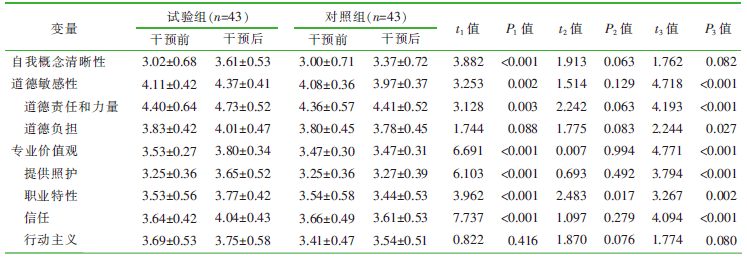 Objective To evaluate the effectiveness of a values growth series board game,developed based on the Gaming Educational Balanced Model and the nursing professional values growth theory,in enhancing professional values,self-concept clarity,and moral sensitivity among nursing students. Methods A randomized controlled trial was conducted. From March to June 2025,86 full-time undergraduate nursing students from a nursing school in Liaoning Province were conveniently selected and randomly assigned to either an experimental group(n=43) or a control group(n=43) using a random number table. The experimental group received a weekly series board game intervention for five weeks in addition to the conventional curriculum,while the control group was given the “Nursing Professional Values Handbook” for self-directed learning. The Nurse Professional Values Scale,Self-Concept Clarity Scale,and Moral Sensitivity Questionnaire were administered before and after the intervention to assess outcomes. Results After the intervention,the experimental group showed significantly higher total professional values scores,as well as significantly higher scores in the care provision,professionalism,and trust dimensions compared to the control group(all P<0.05). The total moral sensitivity score and the moral responsibility and strength dimension score were also significantly improved in the experimental group(all P<0.05). While within-group comparison revealed a statistically significant improvement in self-concept clarity in the experimental group(P<0.05),no significant difference was found between the two groups post-intervention(P>0.05). Conclusion The values growth series board game is an effective,theoretically grounded,and engaging educational tool for enhancing nursing students’ professional values and moral sensitivity,and for promoting self-concept clarification.