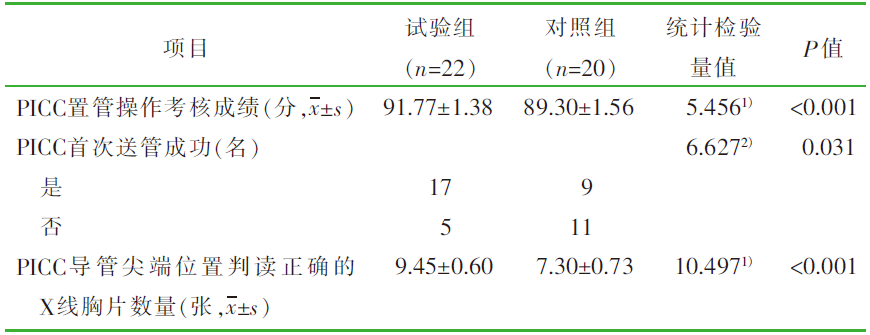 Objective To explore the application effect of mixed reality combined with 3D printing in clinical practice training for intravenous therapy specialty nurses,and to provide new ideas and methods for peripherally inserted central catheter(PICC) catheterization training. Methods A convenience sampling method was used to recruit nurses participating in intravenous therapy specialty clinical practice training in a tertiary hospital in Henan Province from 2023 to 2024 as the study participants. Those trained in 2023(n=20) were assigned to the control group,while those trained in 2024(n=22) were included in the experimental group. Traditional training was provided to the control group,while the experimental group received training utilizing mixed reality combined with 3D printing technology for PICC catheterization. The two groups were compared in terms of PICC catheterization operation assessment scores,first catheter insertion success rates,number of X-ray chest radiographs with correct PICC catheter tip positioning interpretation,and general self-efficacy levels. Results The experimental group outperformed the control group in PICC catheterization operation assessment scores,first catheter insertion success rates,the number of X-ray chest radiographs with correct PICC catheter tip positioning interpretation,and general self-efficacy levels (all P<0.05). Conclusion The application of mixed reality combined with 3D printing in clinical practice training for intravenous therapy specialty nurses can effectively enhance PICC catheterization skill proficiency,and boost confidence in clinical practice. It is worthy of clinical promotion.