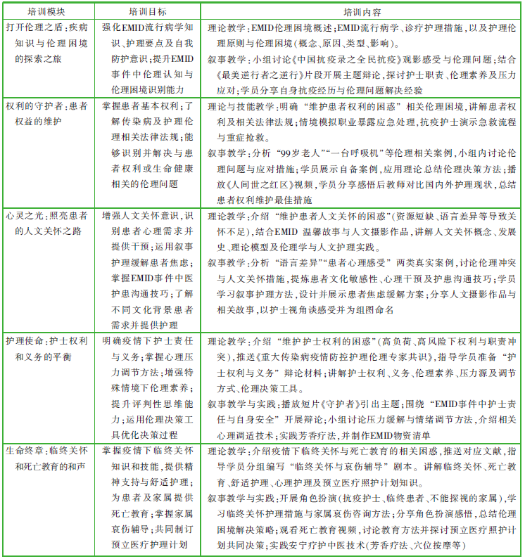 Construction and application of a training program for nurses addressing ethical dilemmas in emergent major infectious disease events